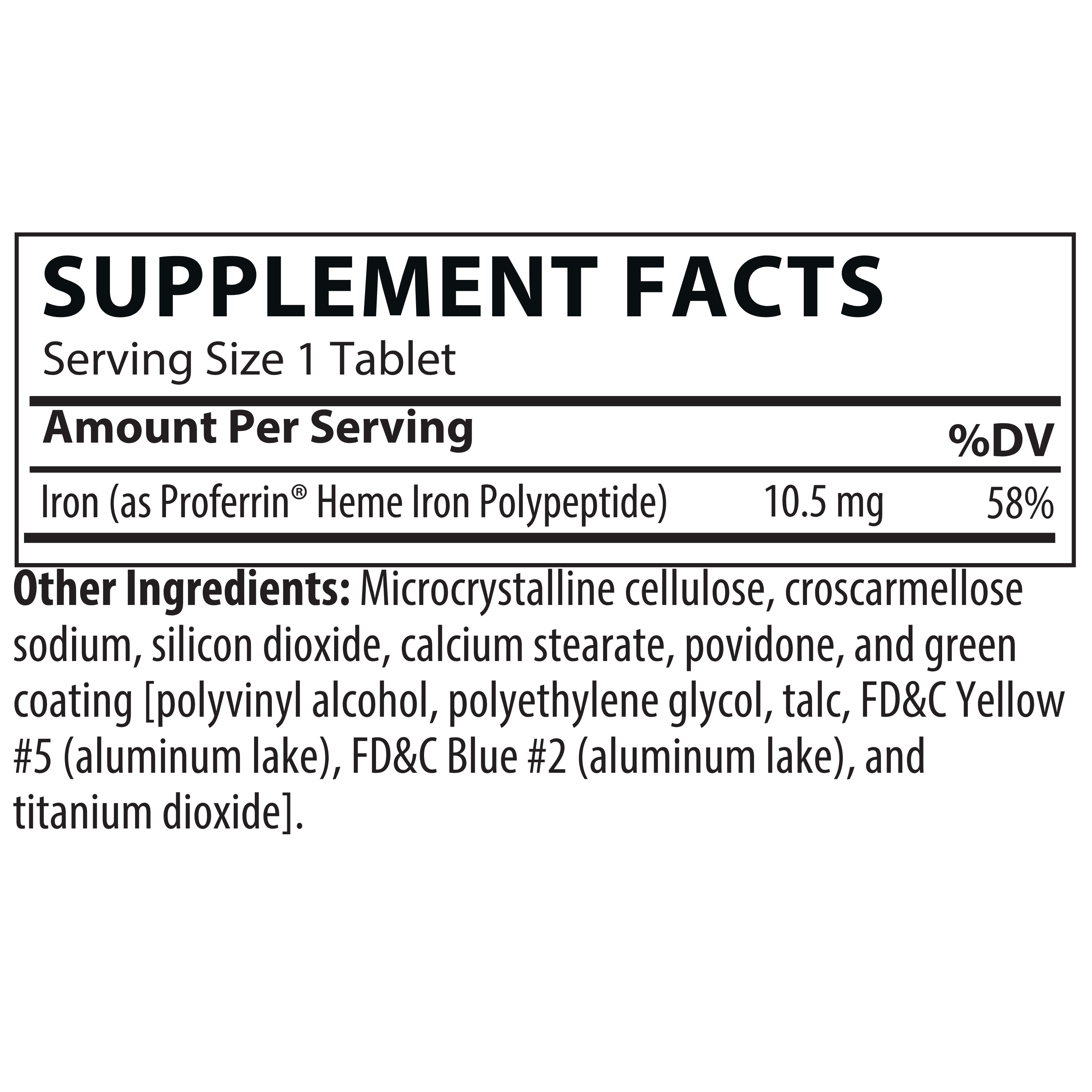 ProferrinĀ® tablets contain 10.5mg Heme Iron Polypeptide per tablet.